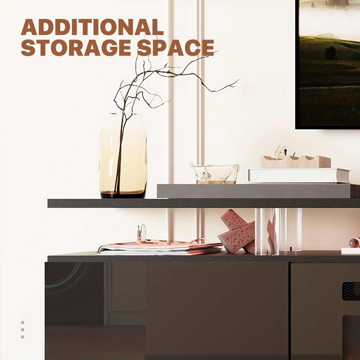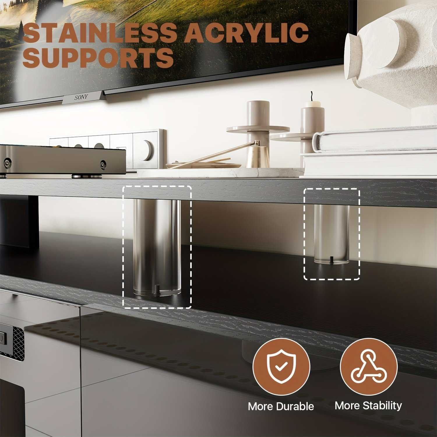 [Sturdy Stainless Steel Support] Equipped with 6 Acrylic columns, offering excellent strength and stability for your TV and storage needs.