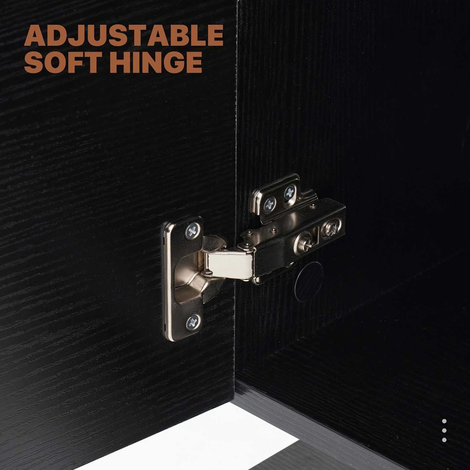 [Elegant Black Wood Grain Finish] Modern wood grain top with mirrored cabinet doors blends seamlessly into any living space—stylish, easy to clean, and low maintenance.