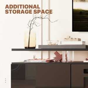 [Ample Storage & Cable Management] Double-layer cabinets hold consoles and accessories, while cable holes keep wires tidy for a sleek, clutter-free look.