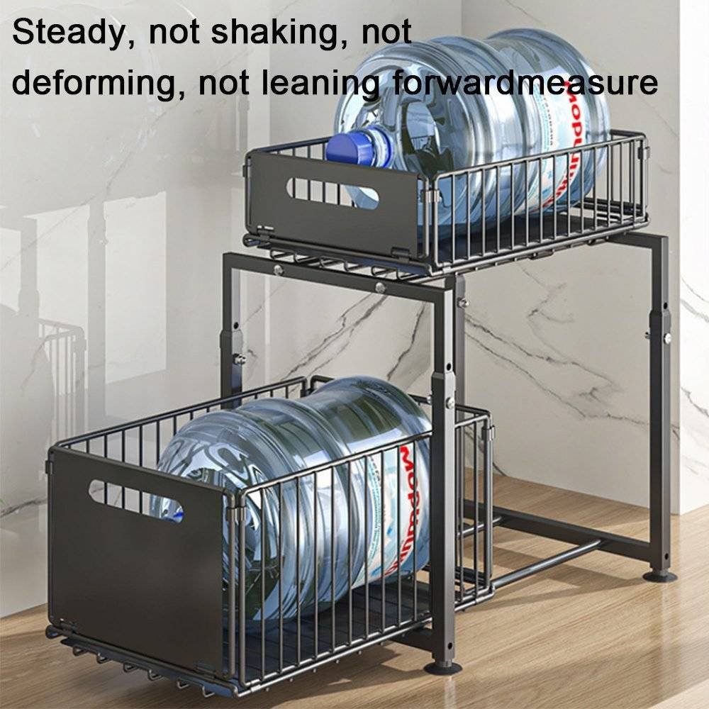 Double Layer Metal Pull-out Drawer Organizer Suitable for Kitchens, Bathrooms, and Offices