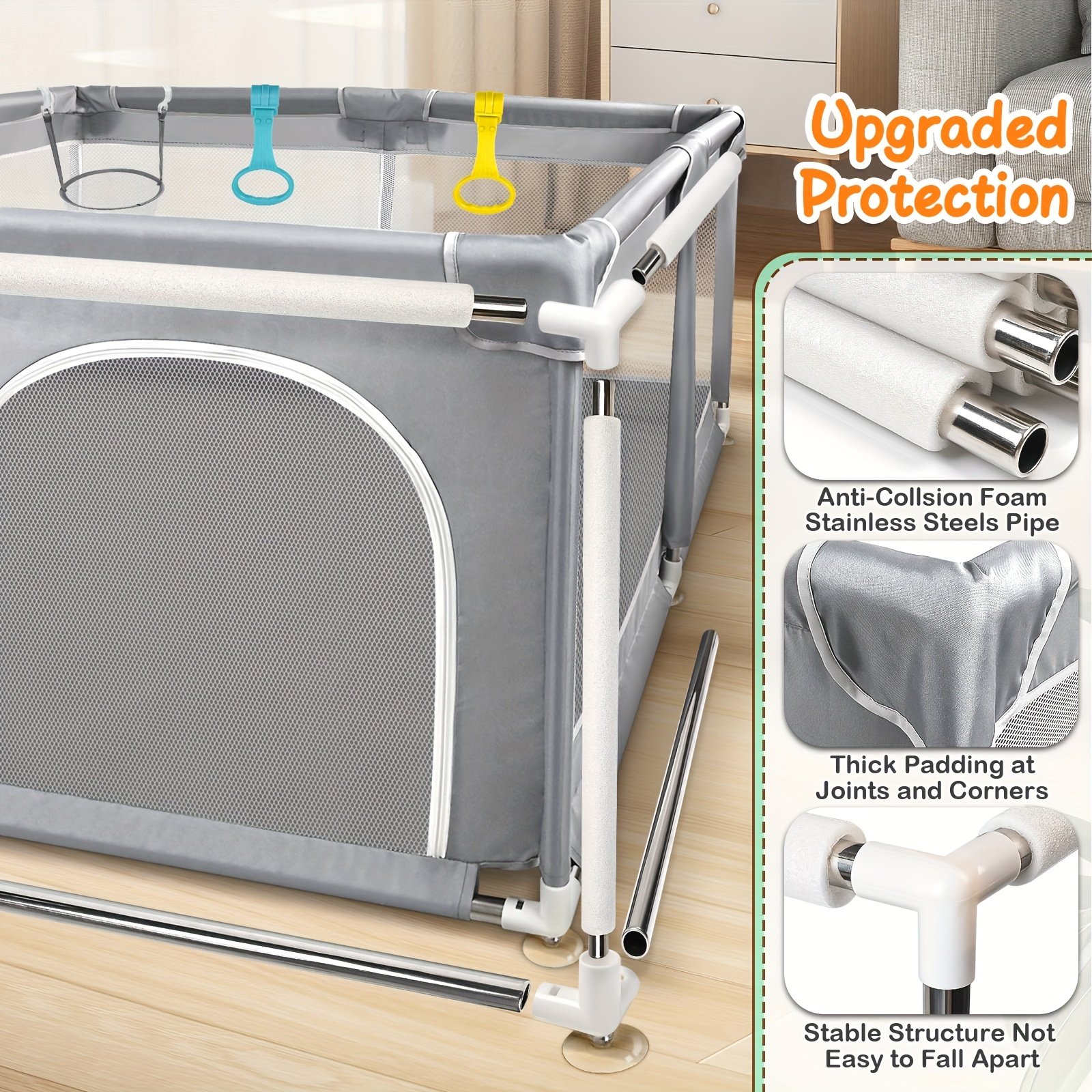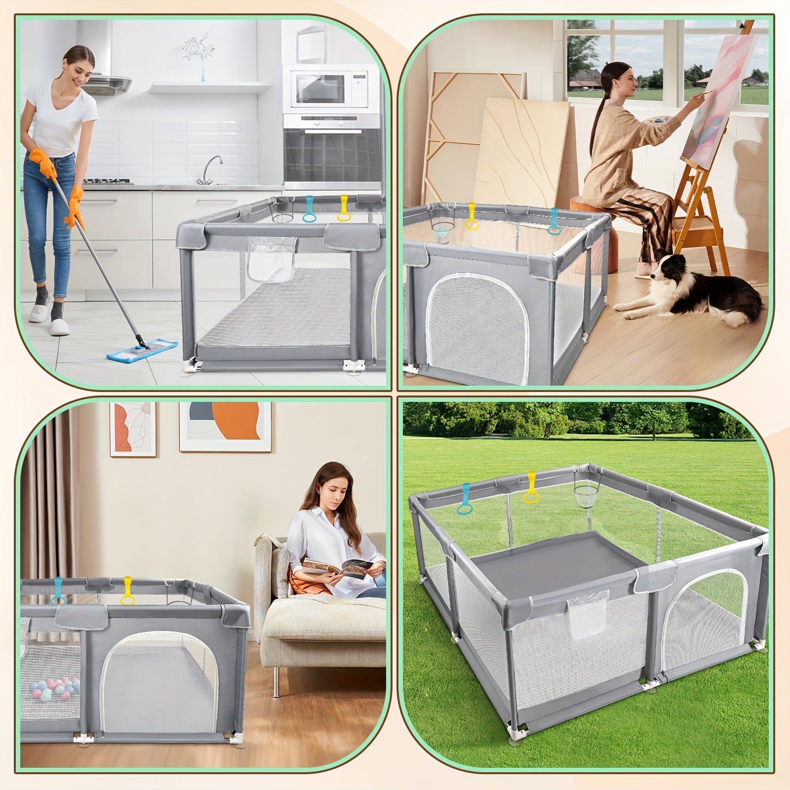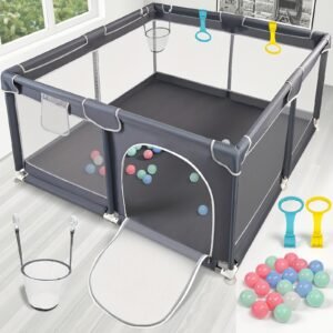 Featuring a round zipper door, it allows for easy “crawl-in, crawl-out” access, giving toddlers a sense of independence while keeping them contained when needed. The breathable mesh walls ensure you always have a clear view of your baby, and the sturdy frame keeps everything stable during high-energy play.