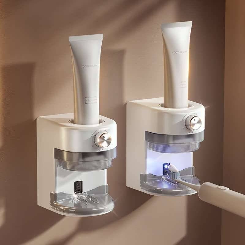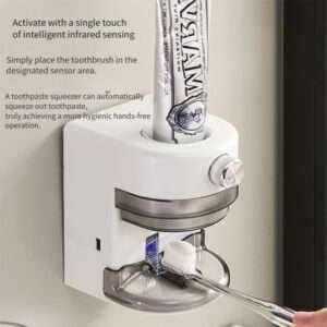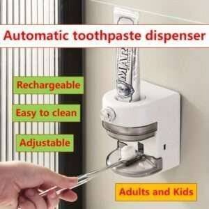 Introducing the Smart Automatic Toothpaste Dispenser, a touchless solution for hygienic toothpaste dispensing. This USB-rechargeable device features a lithium battery, eliminating the need for a plug. Its sleek white design and compact size make it an ideal addition to modern countertops in homes, offices, or during travel. Elevate your hygiene routine with this minimalist, rechargeable dispenser – perfect for busy office workers or frequent travelers seeking convenience and style.