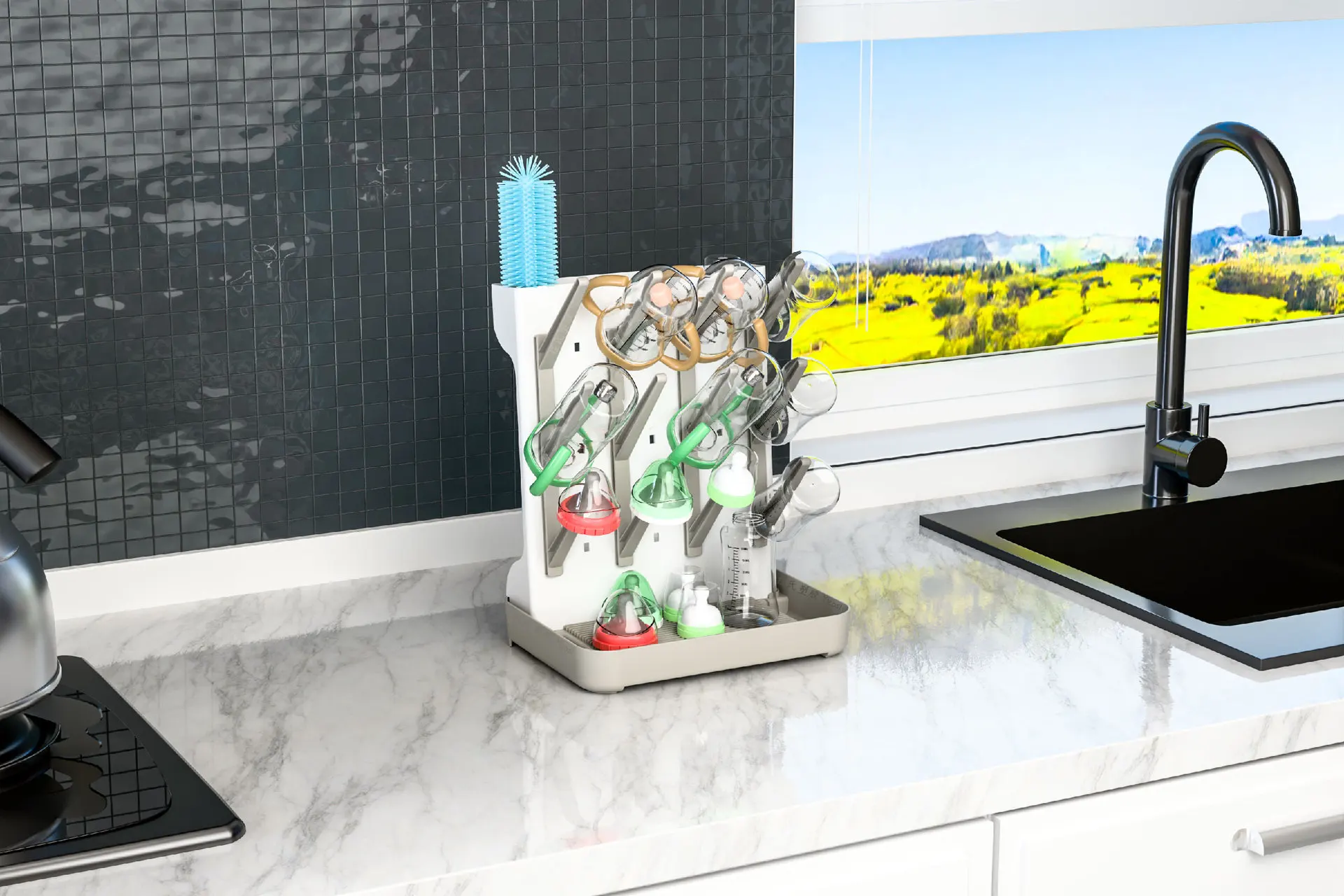• 🚀 Space-Saving Vertical Design: Holds multiple bottles, nipples, and pump parts in a small footprint—perfect for compact kitchens! 🏠