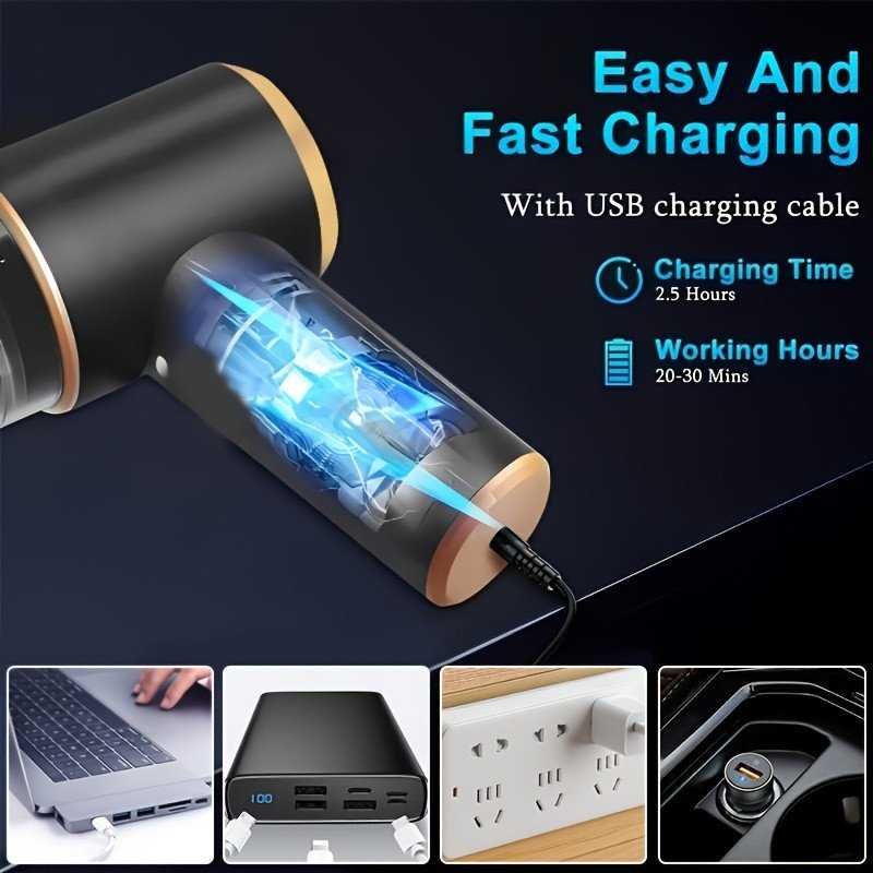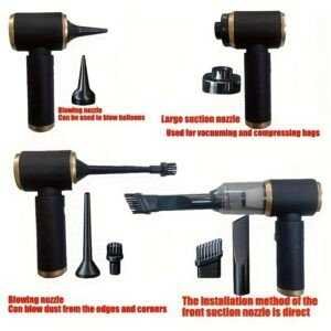 Discover the ultimate cleaning companion with our 3-in-1 Wireless Handheld Vacuum Cleaner! This versatile vacuum appliance combines powerful suction for effortless dirt and debris removal, a blowing function to blast away stubborn dust from hard-to-reach areas, and a pumping mode for inflating items like air mattresses or pool toys. Perfect as a car vacuum for quick interior cleanups on the go, or as a handheld device for home use on furniture, keyboards, and pet hair. Lightweight and cordless for maximum portability, it comes with a range of vacuum accessories and cleaning tools, including nozzles, brushes, and extensions to tackle any mess. The rechargeable lithium-ion battery delivers up to 30 minutes of continuous runtime on a single charge, with a quick 4-6 hour recharge time, ensuring reliable performance for everyday tasks. Built with durable materials for longevity, this vacuum is an essential gadget for busy households, travelers, and car enthusiasts. Say goodbye to bulky vacuums and hello to efficient, multi-functional cleaning!