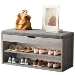Wooden Shoe Storage Bench with...